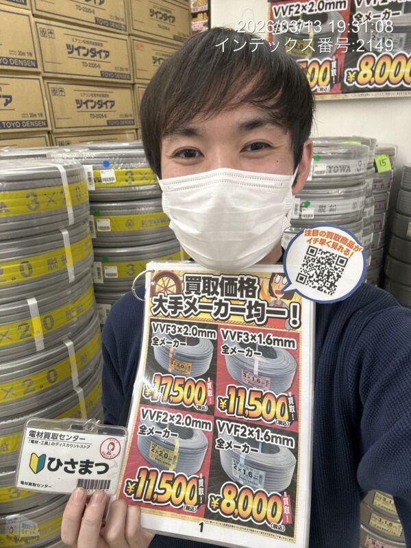 VVF3×2.0mmを17,500円で買取しています!