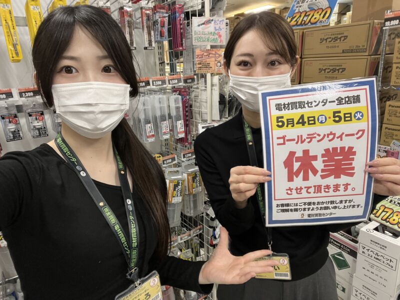 5月4日(月)、5月5日(火)は電材買取センター全店舗で休業とさせていただきます🙇♂️