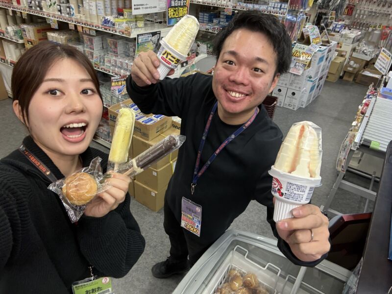 チョコアイスやガリガリ君アイス、シューアイス、ソフトクリーム等々、様々な種類のアイスがあります!!
