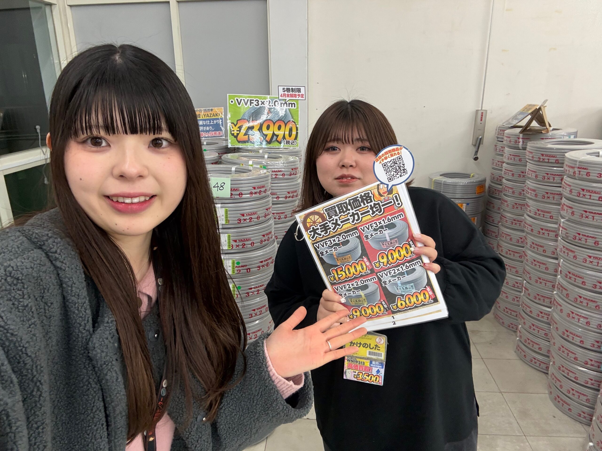 VVF2.0x3芯を15,000円(税込)で買取しております!