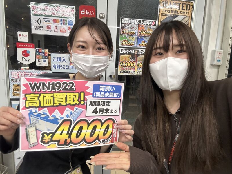 コンセントのWN1922を3月末までの期間限定で